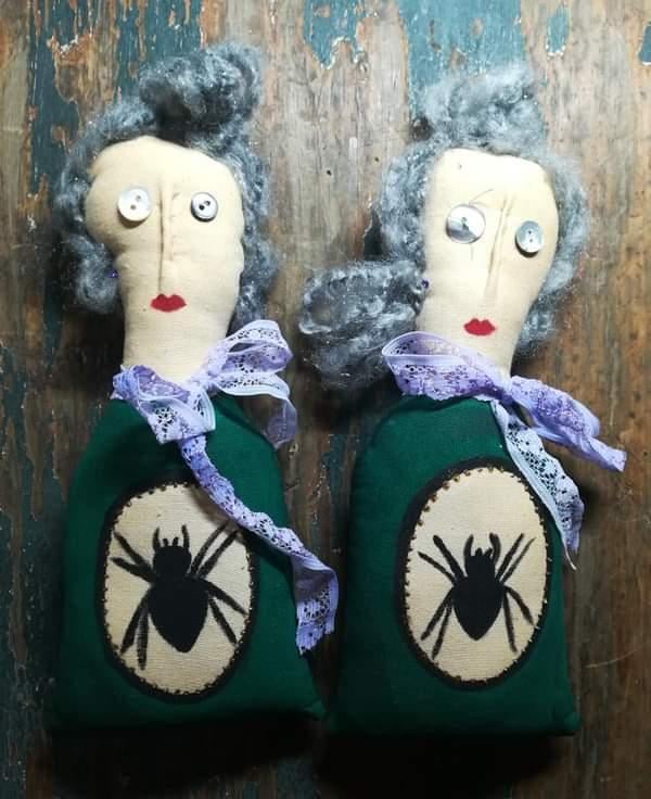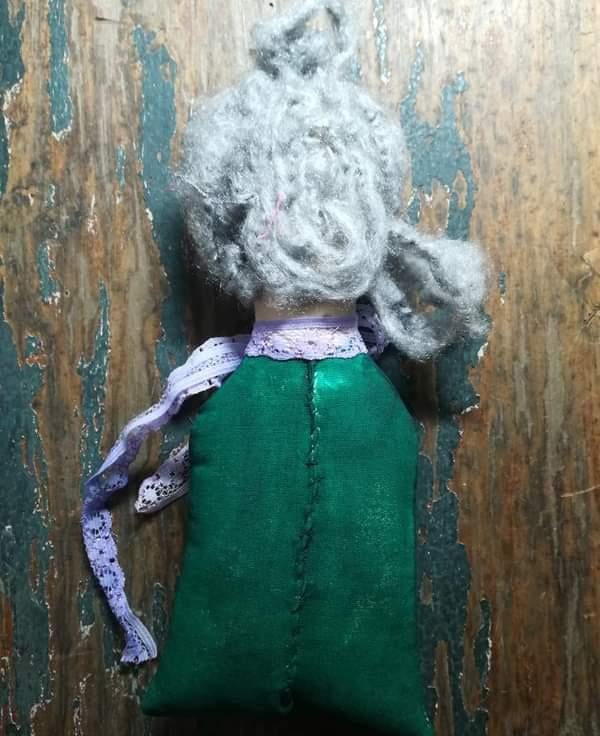 Each doll has hand stitched hair in Grey's and black vegan friendly yarn