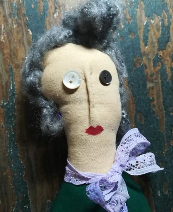 A hand created art doll made from my own design and pattern. I hand draw each doll pattern then create using vintage linen fabric.