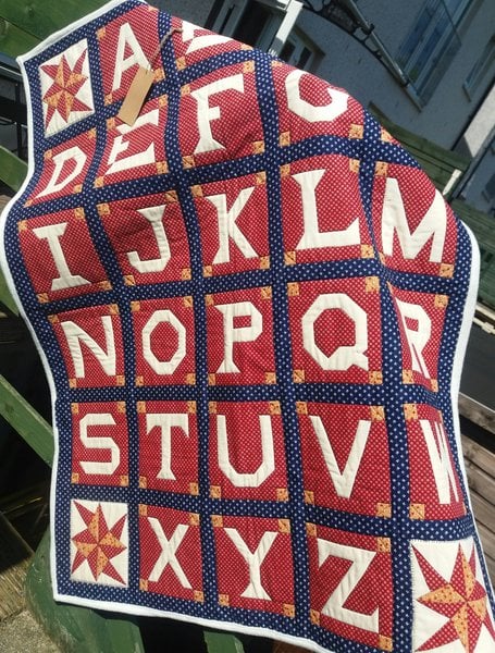What a wonderful quilt to teach the ABCs. Part of the I988 Museum of American Folk Art USA designs, this quilting panel is made from 100% cotton fabric. Each alphabet letter is framed with contrasting fabric giving it easier to identify letters. There's some lovely small detail on both the lettering panel and the edging fabric. A Keepsake to hand down through the years.