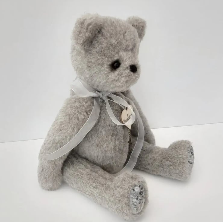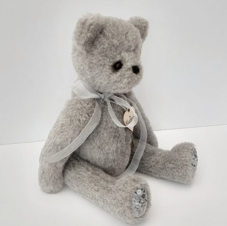 Blueberry a large heirloom bear, created from a lovely dense alpaca fabric in greys, standing at approx 16.5" /43cm tall excluding her ears.