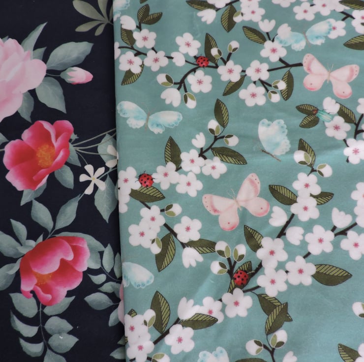 3 pieces of flowers and butterflies in pink, white and green, all 3 pieces measure 17in (43cm) by 17in (43cm)