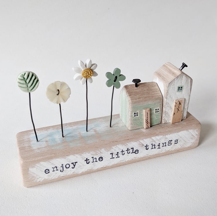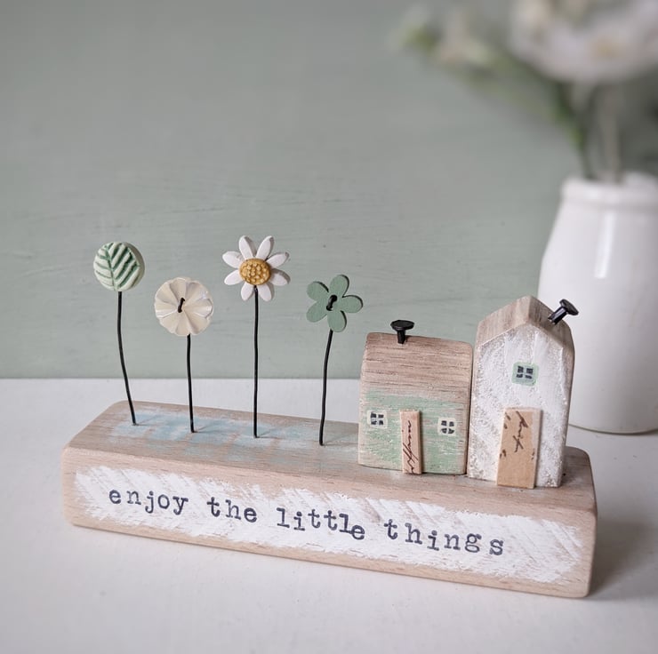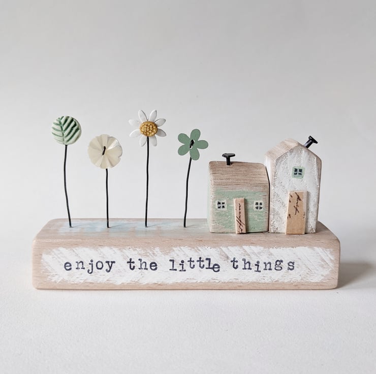 Little Wooden Houses with Clay & Button Garden 'Enjoy the little things'