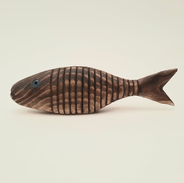 20 cms articulating fish in pine.