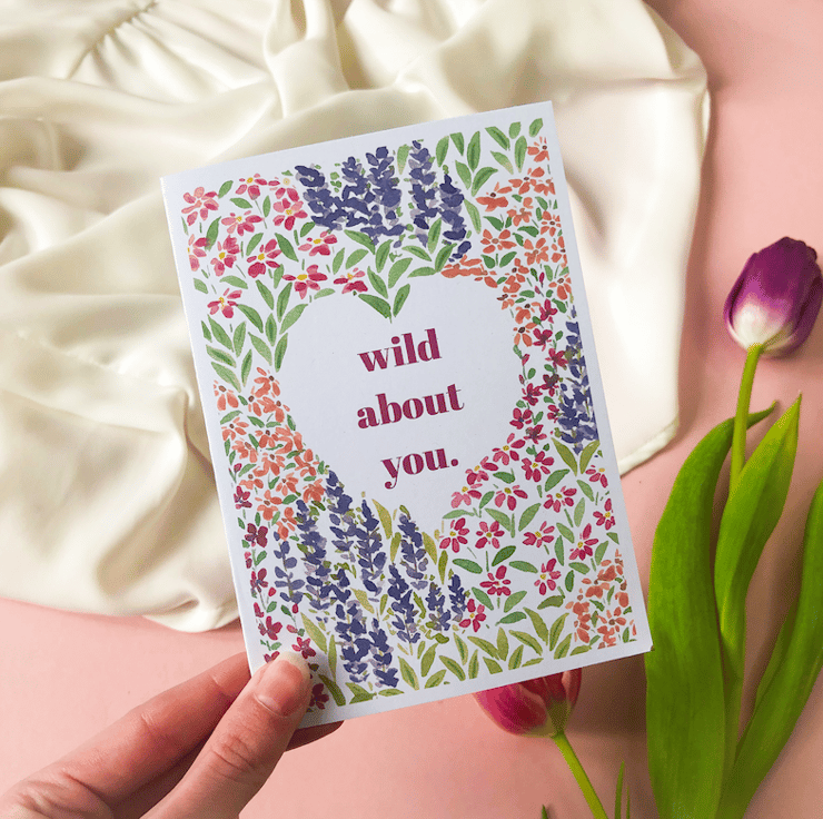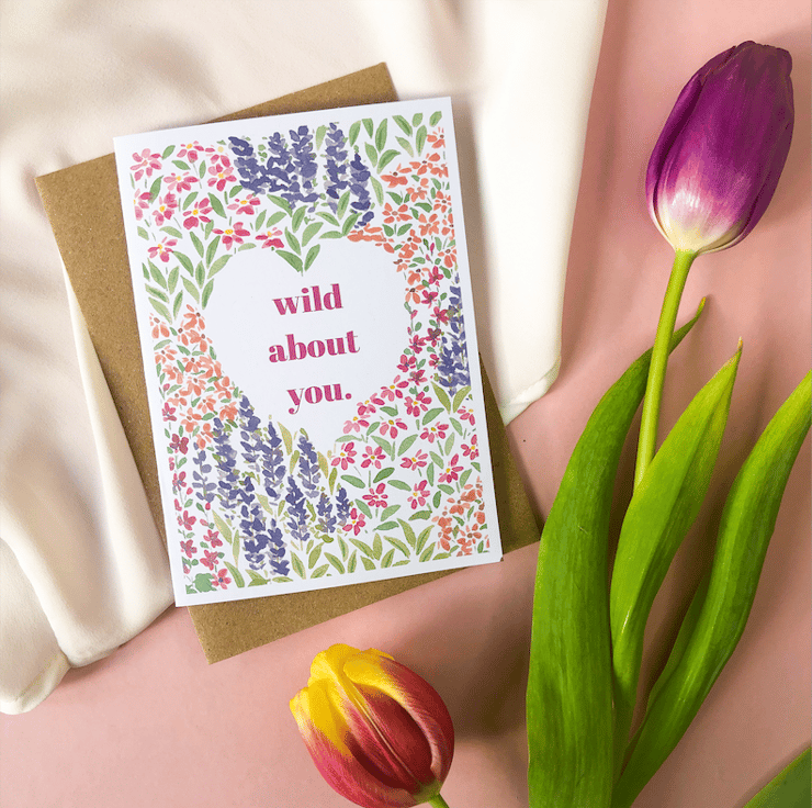 Send some love with this eco-friendly floral 'wild about you' card, featuring lots of watercolour flowers. Perfect for Valentines Day, if you're celebrating with a partner, or Galentines Day, if you're celebrating with your friends!