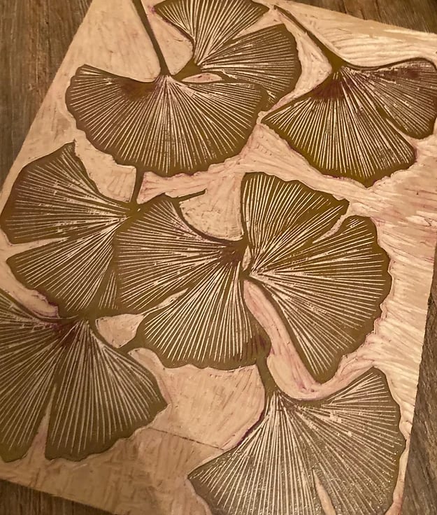 An original, woodblock print that has been illustrated and carved by hand.