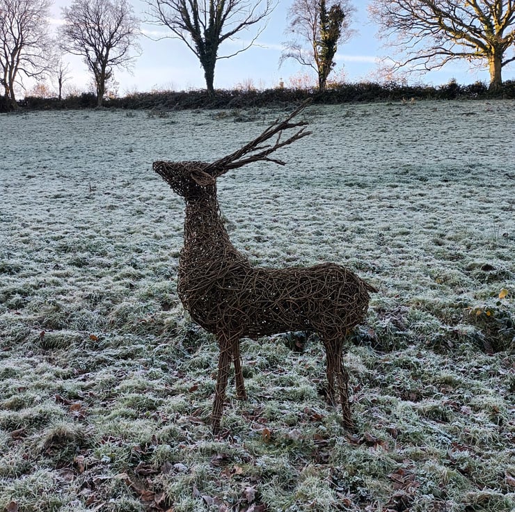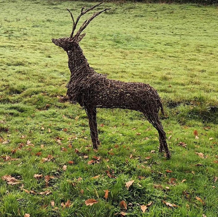 Handsome Willow Stag sculpture. Handwoven in willow.