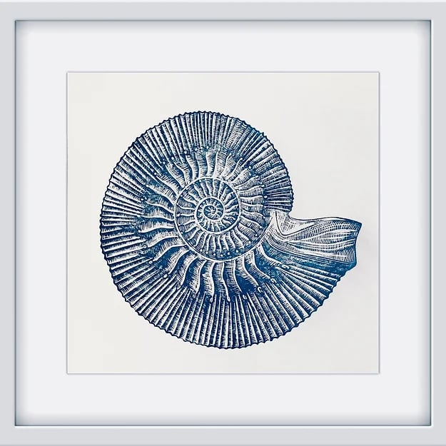 A set of three Original, Limited Edition Linocuts; ‘Ammonite’, ‘Octopus’ and ‘Drill Shell’.