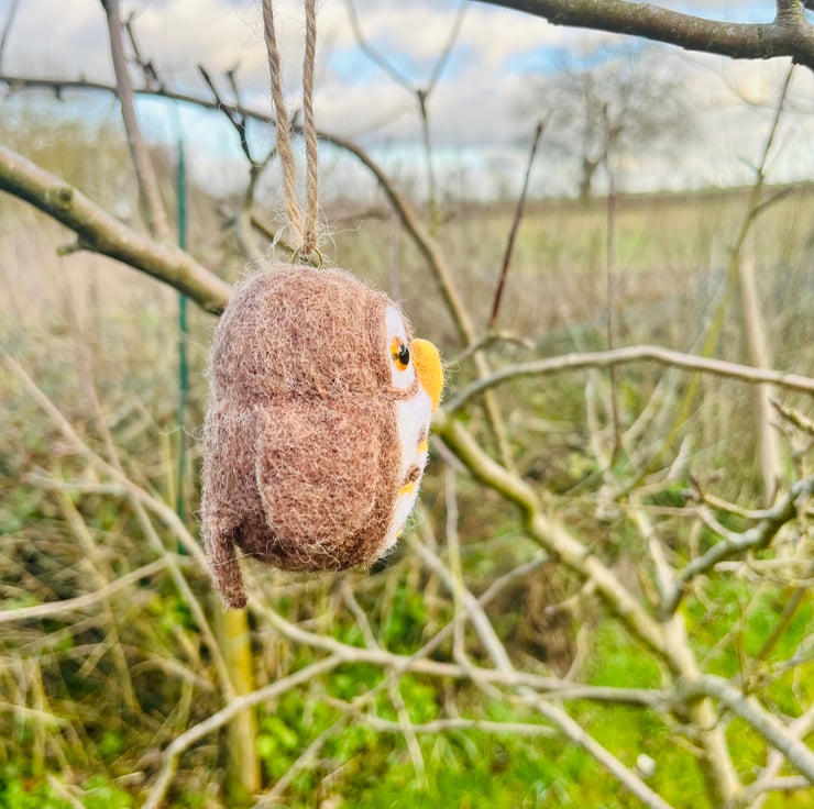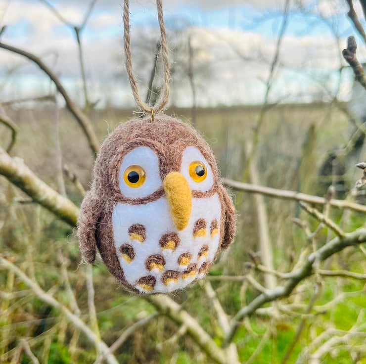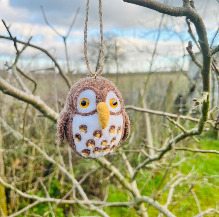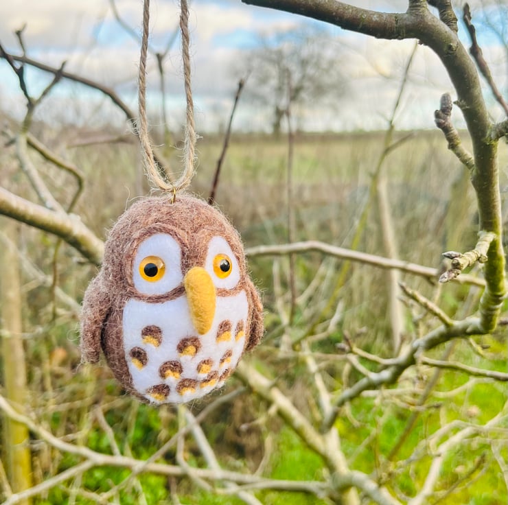 Needle Felted Little Brown owl hanging decoration.
