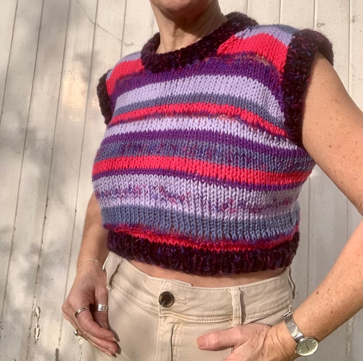 I wanted to try to use up some of my yarn so decided to make this striped top. Inevitably I needed to buy more to finish this project!