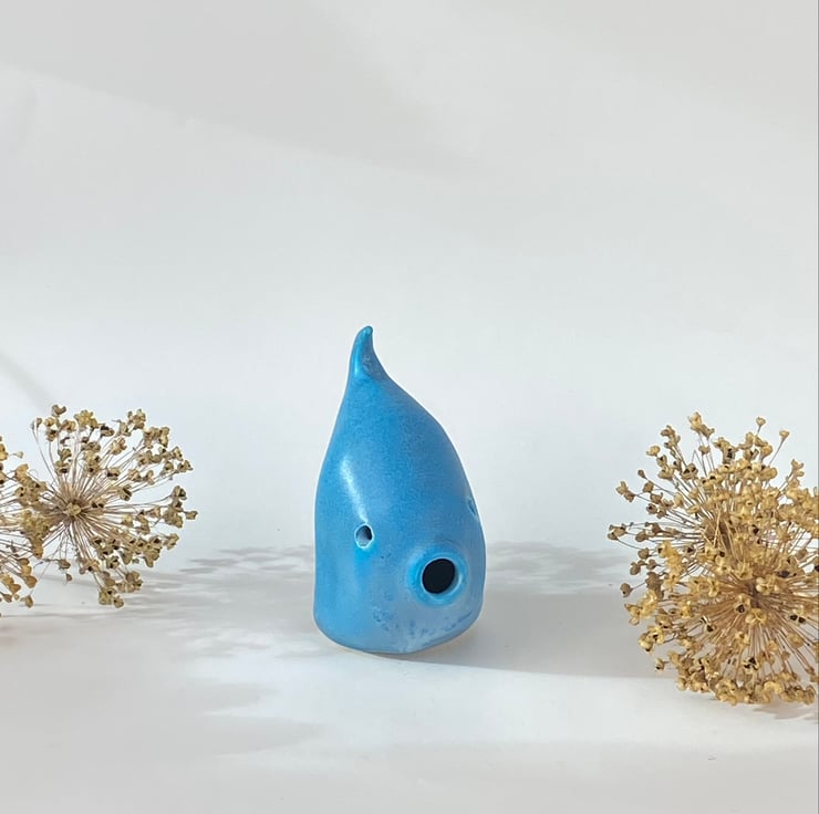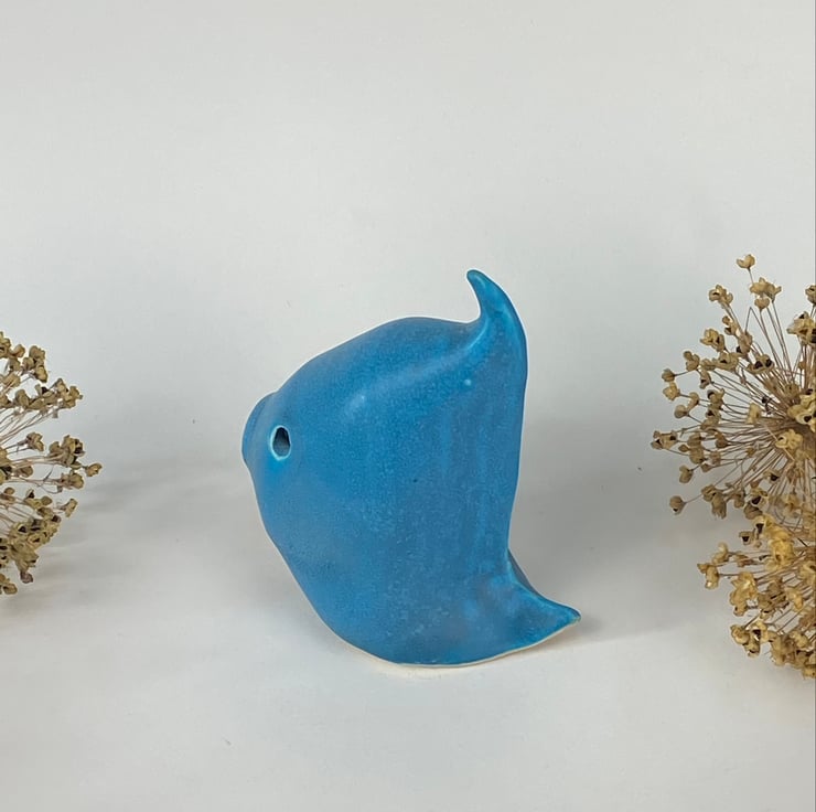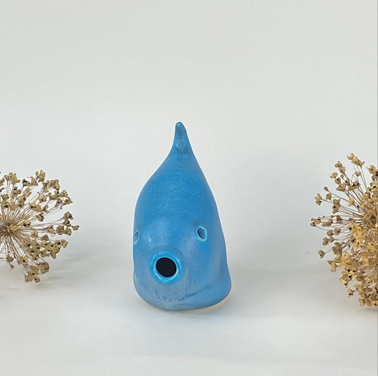 I love making these little fish. It is great fun watching their expressions and personality emerge from the clay. Each one is truly unique. I make them by throwing on the wheel and then alter the shape while it is still wet - the wetter the clay, the more emotional the fish tend to be ! Finishing touches like piercing the eyes come later when things have firmed up a bit.
