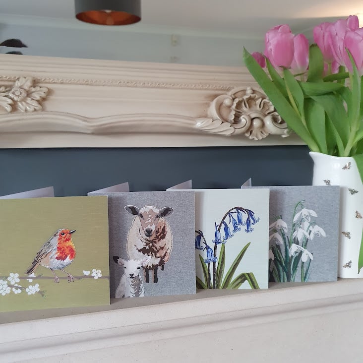 Set of 4 Spring inspired greetings cards: