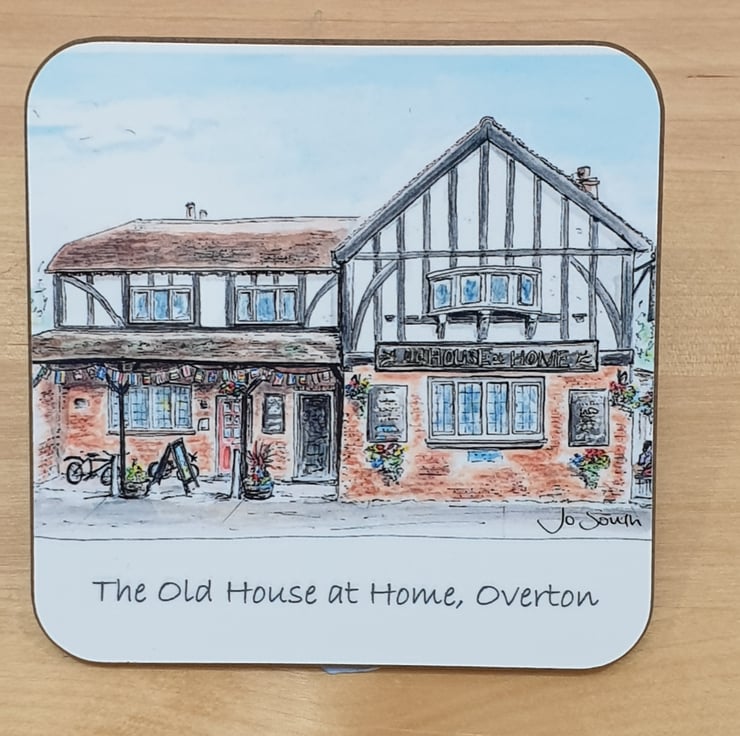 A 90mm square coaster featuring Jo's watercolour painting of The House at Home Pub