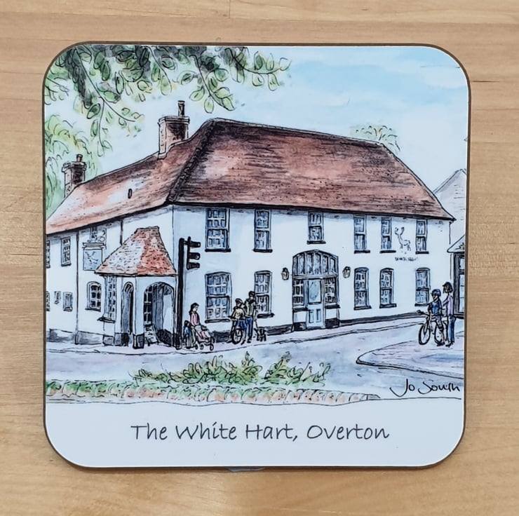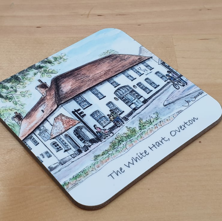 A 90mm square coaster featuring Jo's watercolour painting of The White Hart Pub