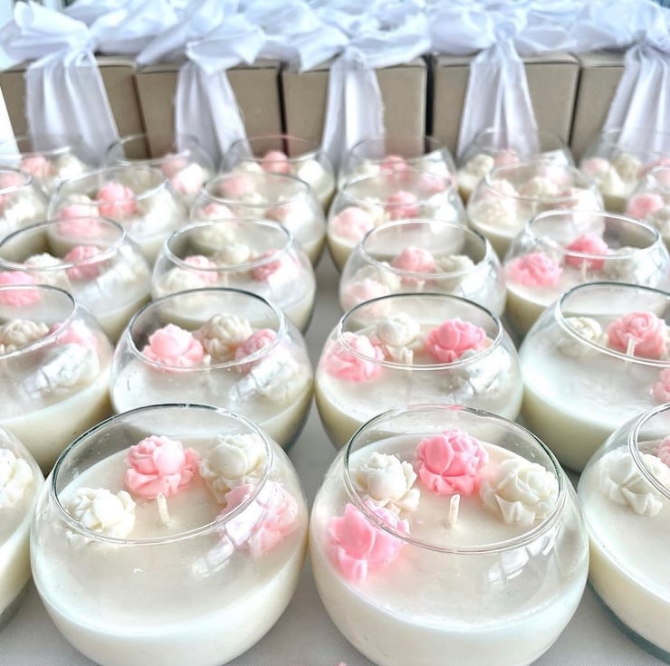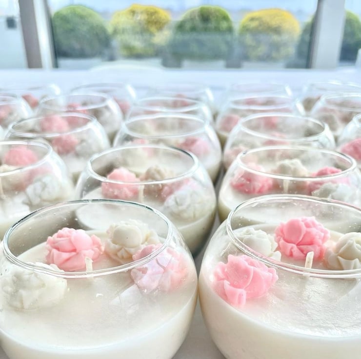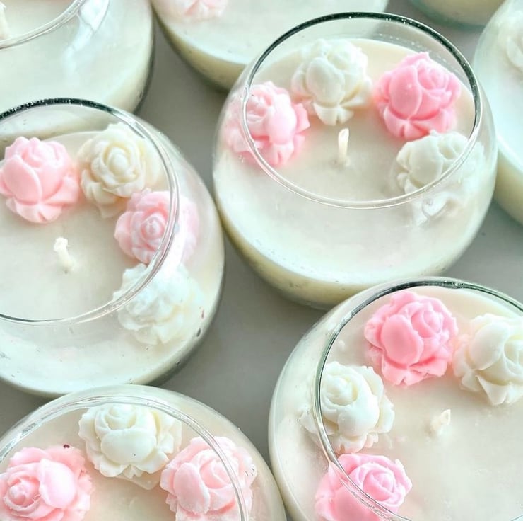 The pretty candle is handcrafted with roses and vanilla fragrance. They are perfect for you and your loved ones .