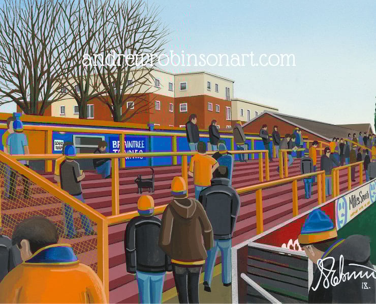 Titled ‘Cressing Road Congregation’ this is a unique Braintree Town F.C print direct from myself the artist. My artworks are a celebration of the match day experience and of stadium architecture.