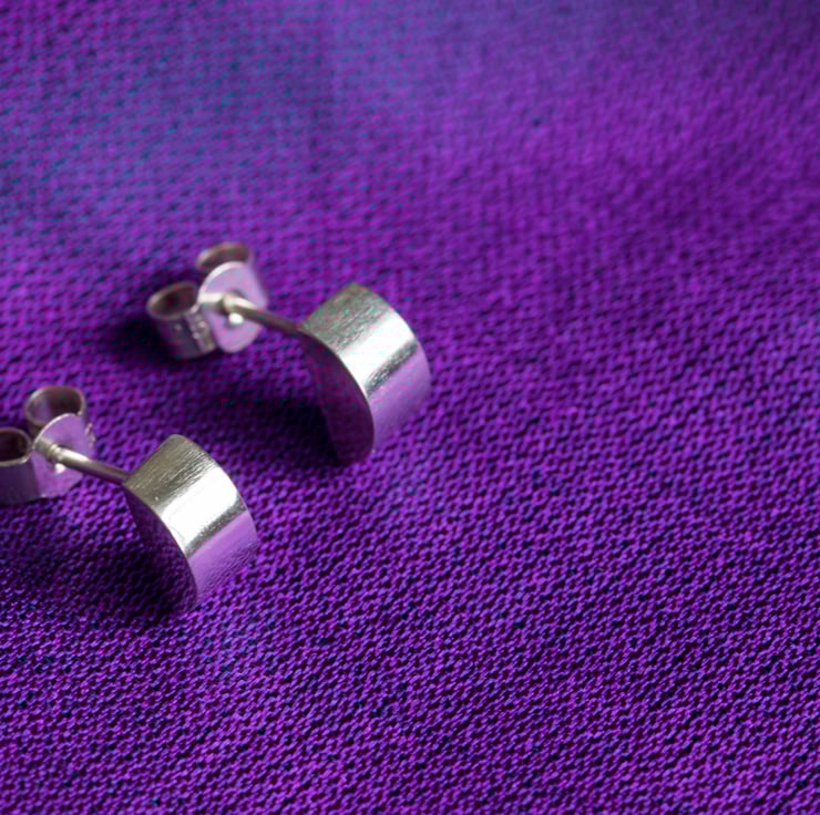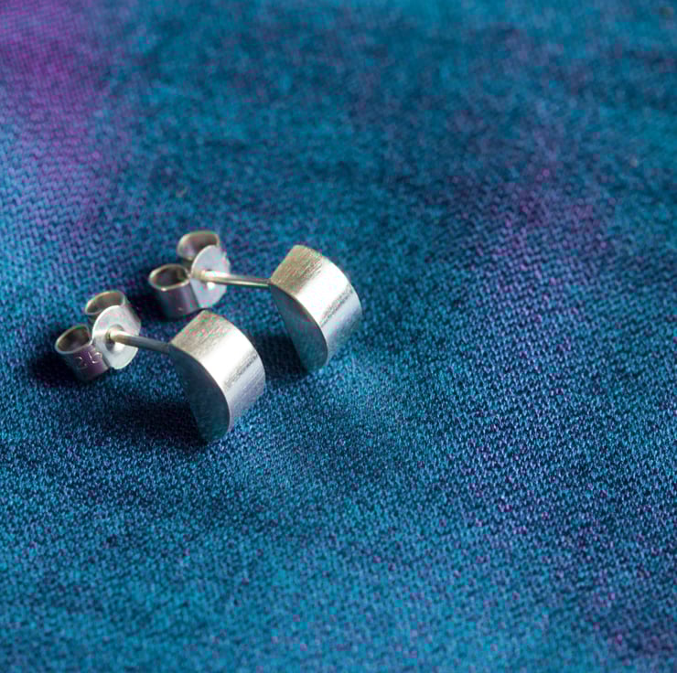 A beautiful pair of silver half-moon stud earrings giving a contemporary, elegant, sleek look.