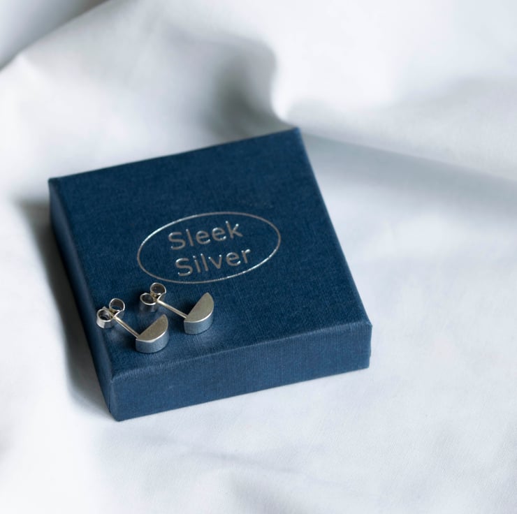 This pair of quality ear studs come presented in a branded Sleek Silver jewellery box with a compliment card and care instructions. All packaging is eco-friendly.