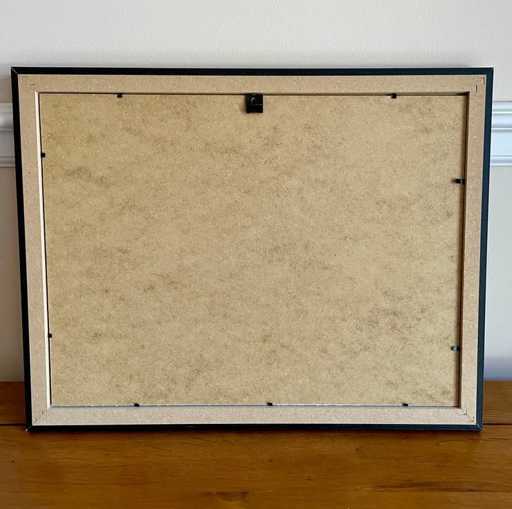 Black frame (45cm x 35cm) and white mount included.