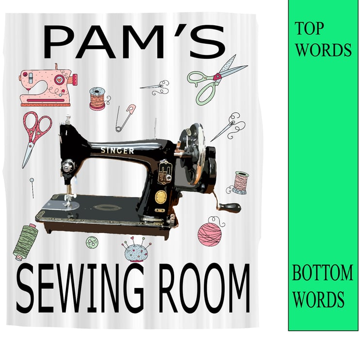 sewing sign please send top words & bottom words i wlll copy and paste into place