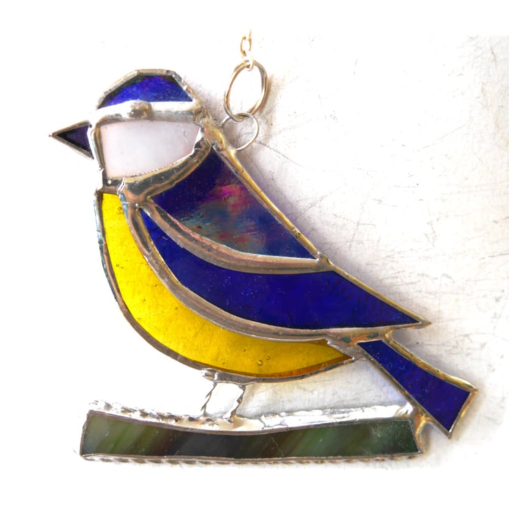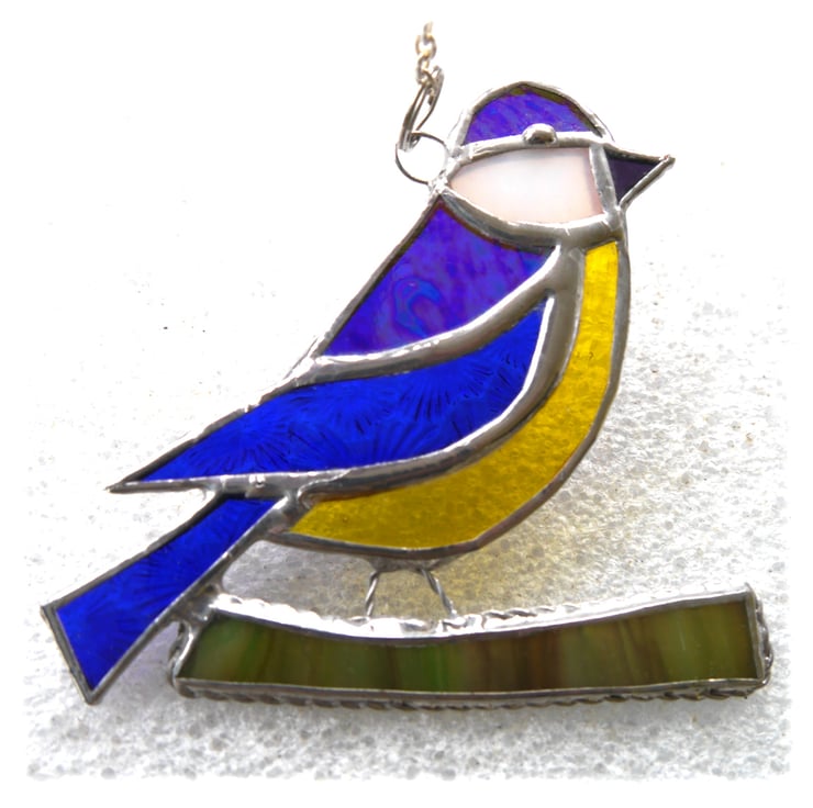 This is a very sweet little Blue Tit. I have some nesting in the garden and they are so very cute I just had to make a glass version as I feel rather honoured that they have chosen my garden for their home. it may be they like the food I provide !.