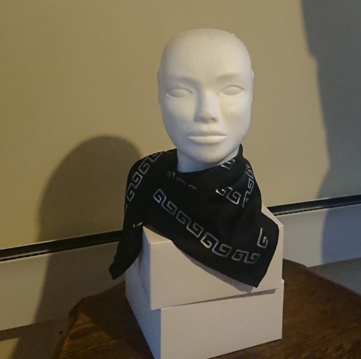 Imperfect - The black silk scarf with a hand painted silver design is a bit wonky in places so the price is reduced from £55 to £27.50.