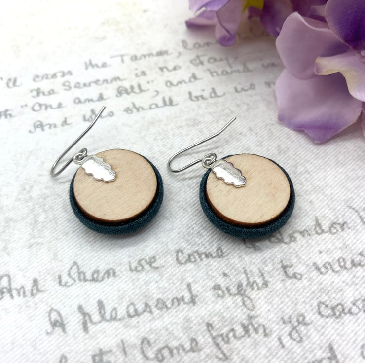 Show someone you care with these cute rustic-design Scandi heart fabric button earrings.