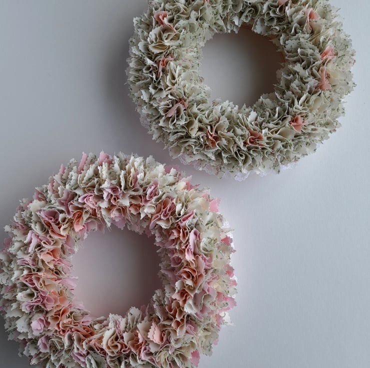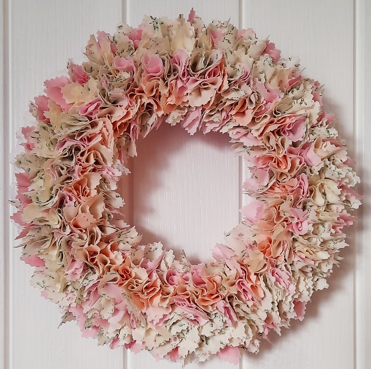 These chunky fabric wreaths are made in my workshop where I use my love of texture and colour. This time I've opted for soft pastel colours.