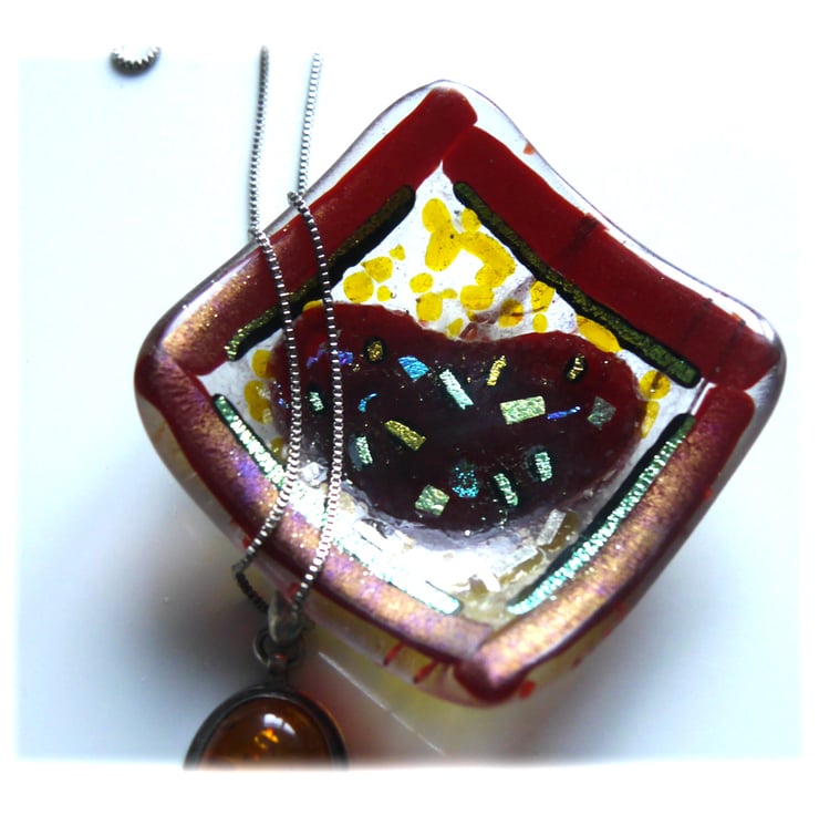 I've added a plump red heart decorated with dichroic for interest and glitter and filled the surround with golden yellow frit. I've bordered it with iridescent red and a line of golden dichroic..