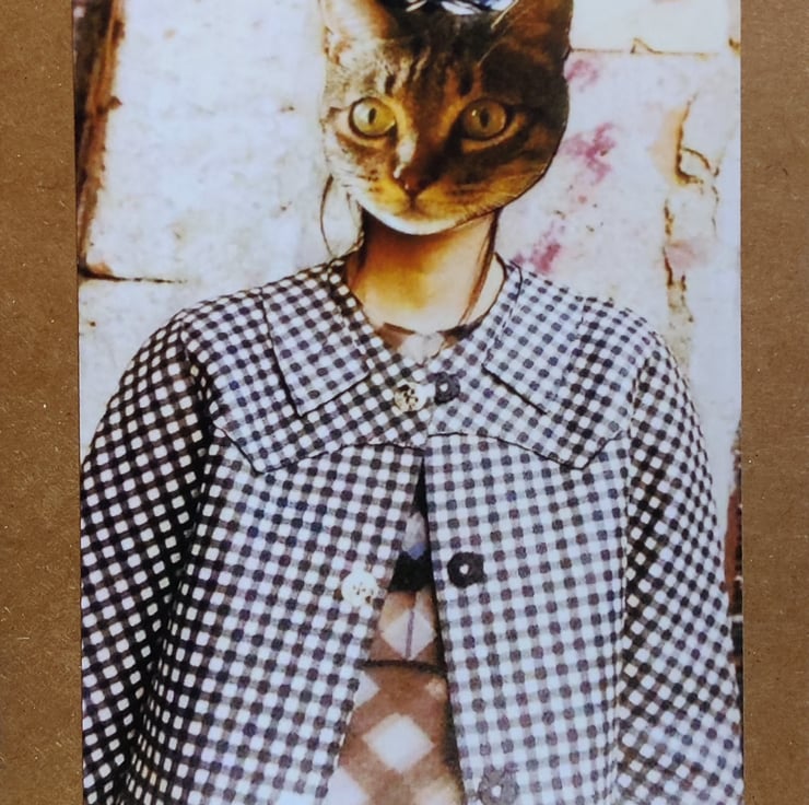 Print of one of a series of Original Vogue Magazine and Cat Gallery collages. Mounted on White Card or Kraft Brown Card