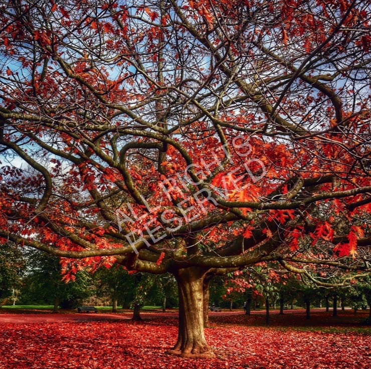 There's nothing like a splash of colour to brighten up a wall and this photo does just that. The bright red autumnal leaves on this tree really stand out against the crisp blue sky.