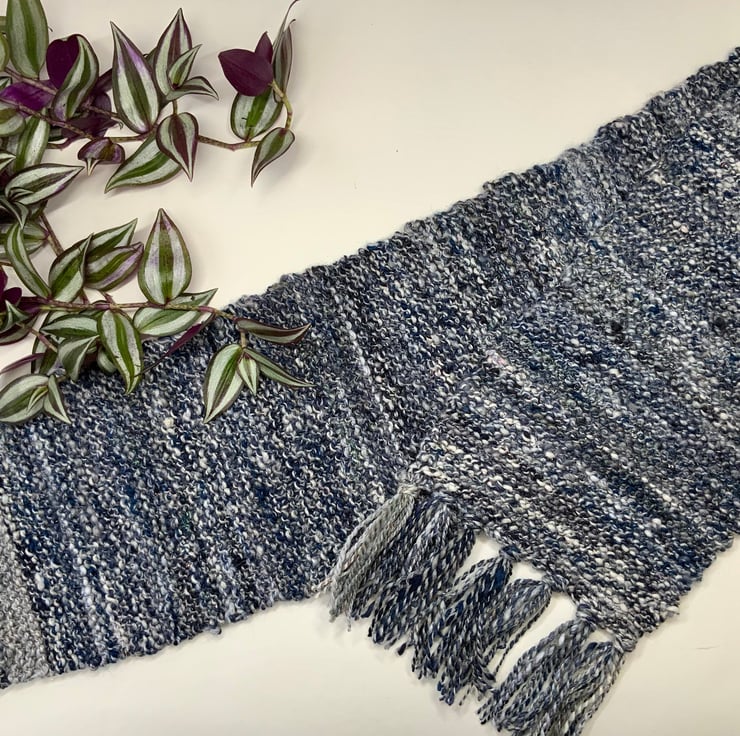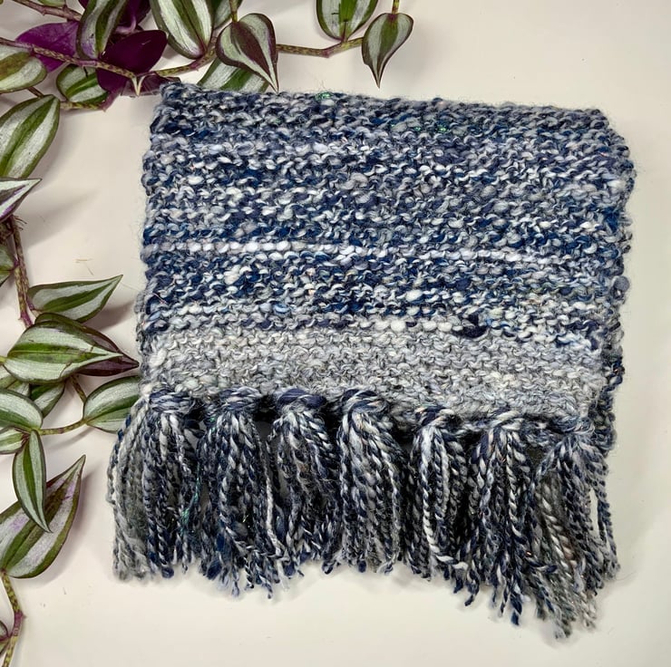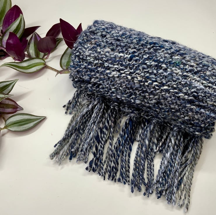 "Moonlit nights" - A knitted scarf made from a mix of hand spun fibres.
