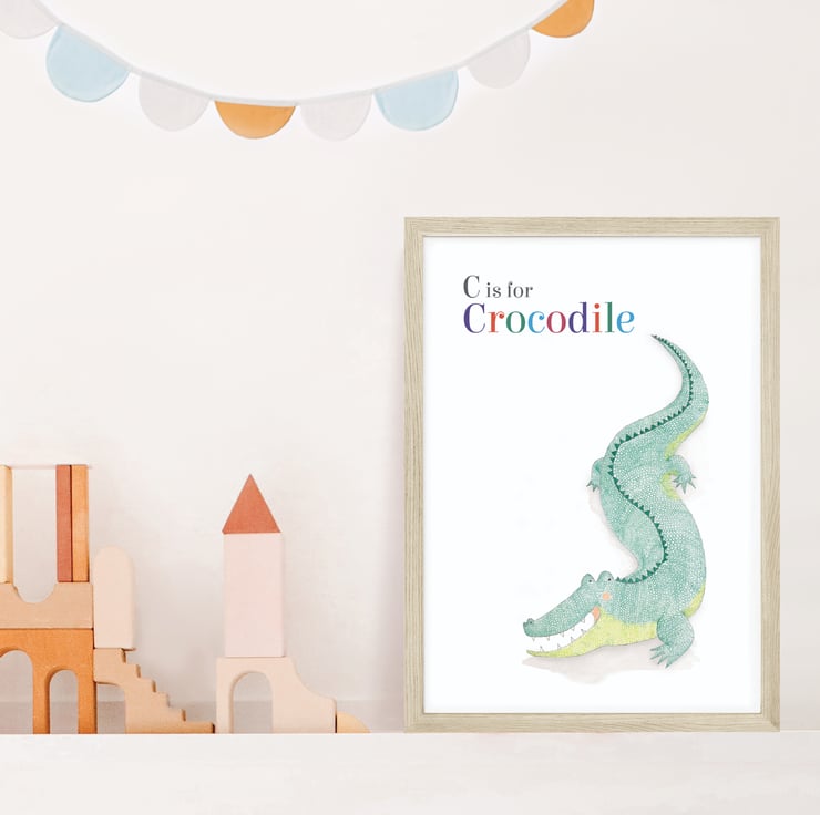 Make room on your walls for this happy croc who is equally at home in a zoo themed nursery, a jungle inspired toddler room or a safari styled playroom.