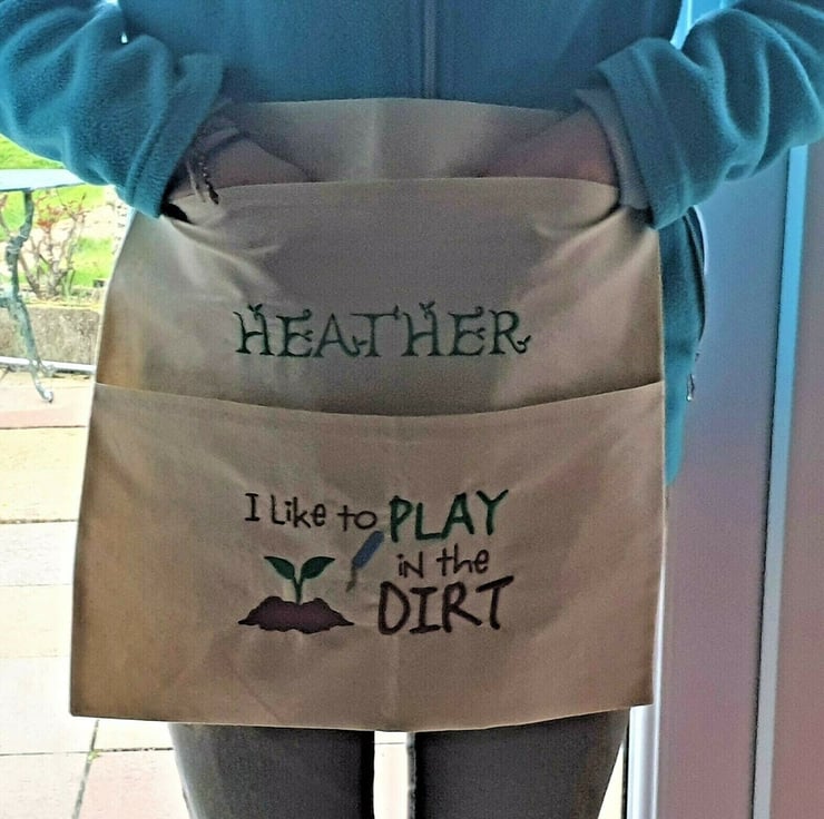 Handmade fabric Personalised Gardening Apron 2 pockets great present Mothers Day