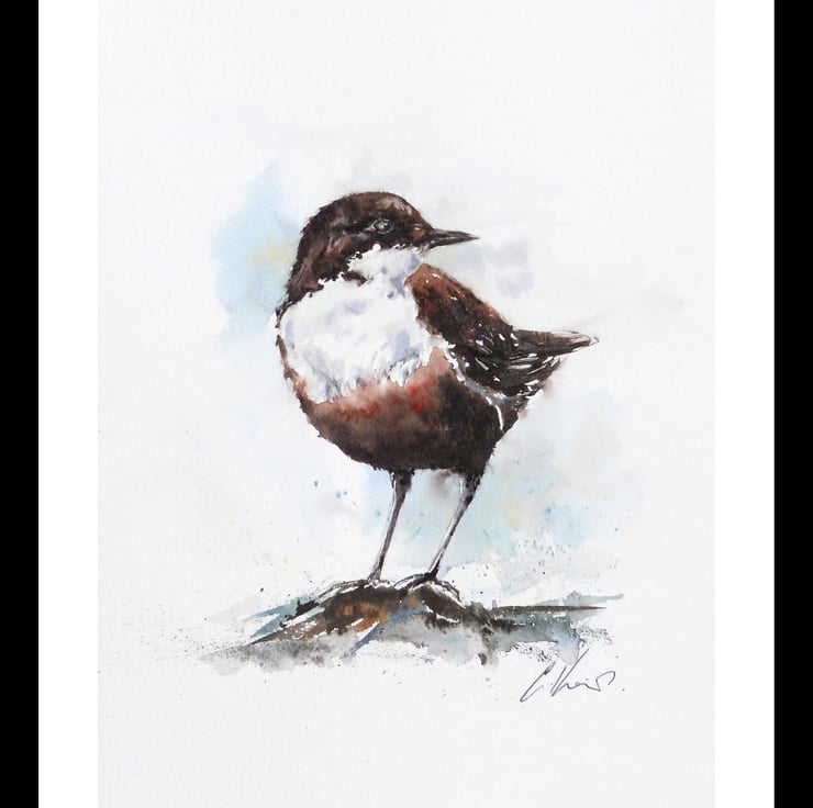 Working from my home studio on the beautiful Isle of Mull off the west coast of Scotland, my paintings are inspired by the wonderful Seascapes, Landscapes and Wildlife that surround me. This particular painting is of the elusive Dipper, always a joy to spot on a walk along the banks of a river.