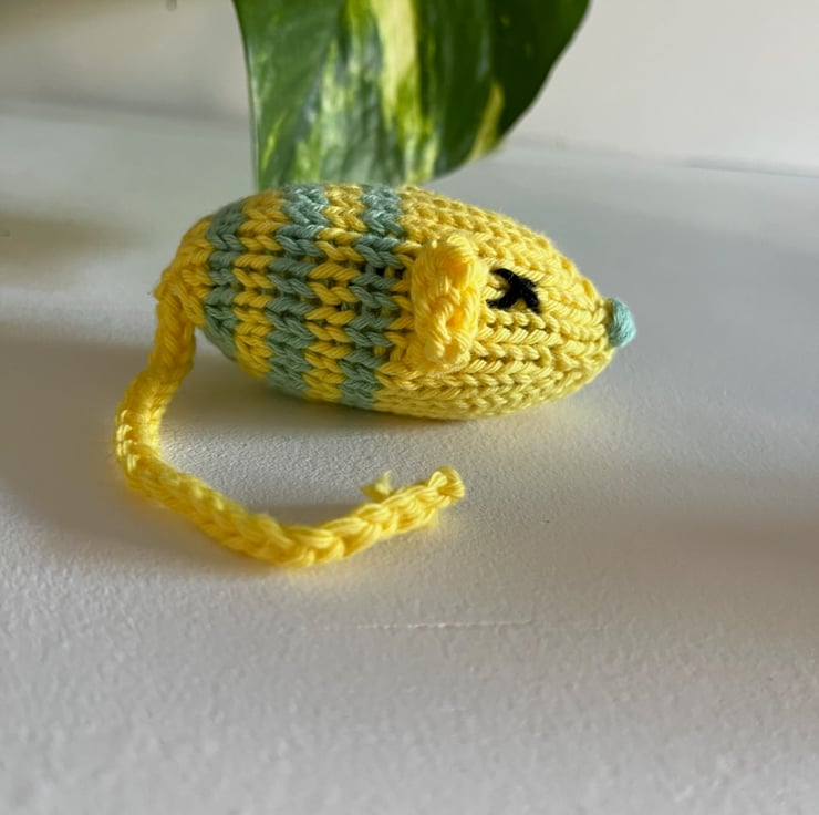 Mouse- yellow with sage green stripe, approx 7cm in body