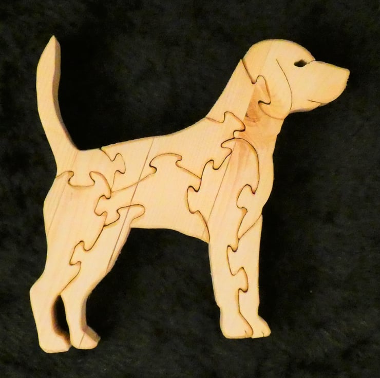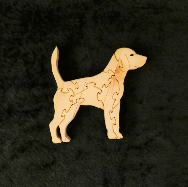 This unique wooden Labrador Jigsaw Puzzle, has been upcycled from reclaimed wood. This adorable dog would make a lovely table centerpiece or ornament for dog lovers. It would make a perfect gift for numerous occasions such as a housewarming gift, a gift for her or as a gift for him.