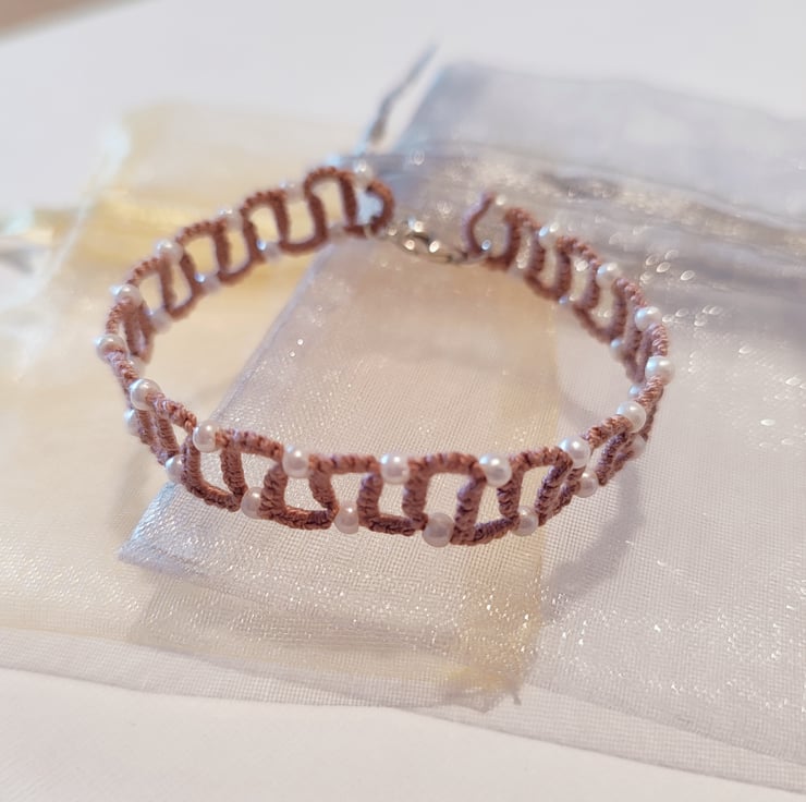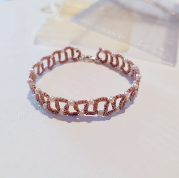 Tatting lace bracelet in dark beige colour.
