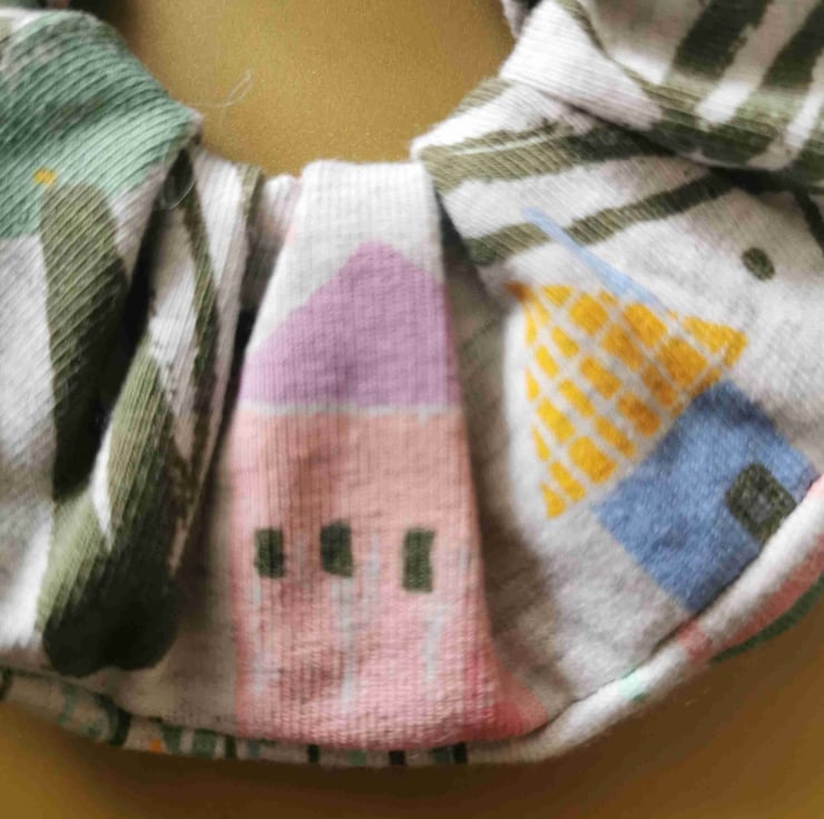 A really cute scrunchie with houses and trees and ladybirds. 100% cotton handsewn scrunchie.