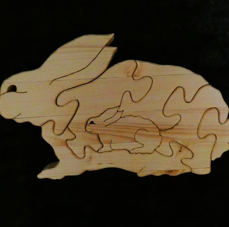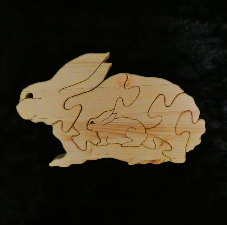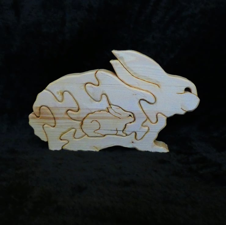 This eco friendly wooden Rabbit with her baby rabbit Jigsaw Puzzle, has been upcycled from reclaimed wood. This jigsaw would make a lovely table centerpiece or ornament for animal lovers. It would make a perfect gift for numerous occasions such as a Housewarming Gift, an Easter gift or a Sister-In-Law Gift.