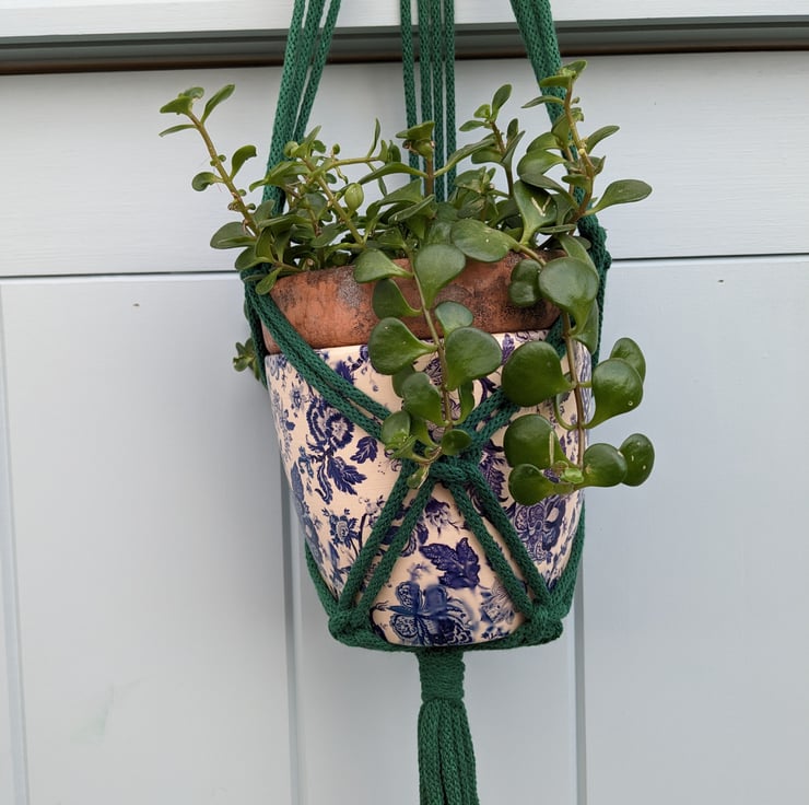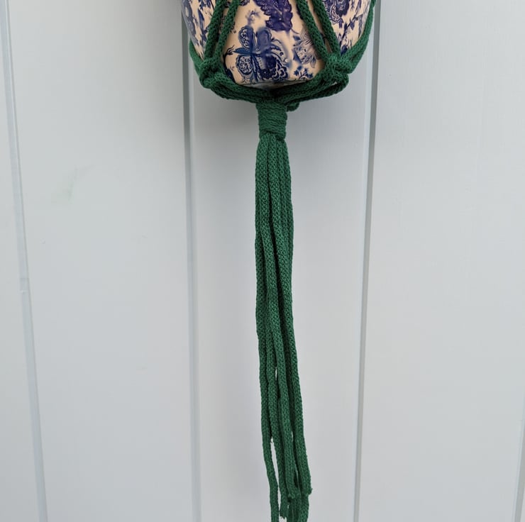 Beautiful macramé hanging basket, handmade in Wales, UK.