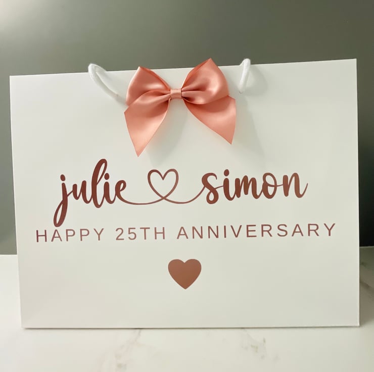 Personalised Happy Anniversary Gift Bag, Medium Landscape Gift Bag, Recycled with Rope Handles, - Any Name.