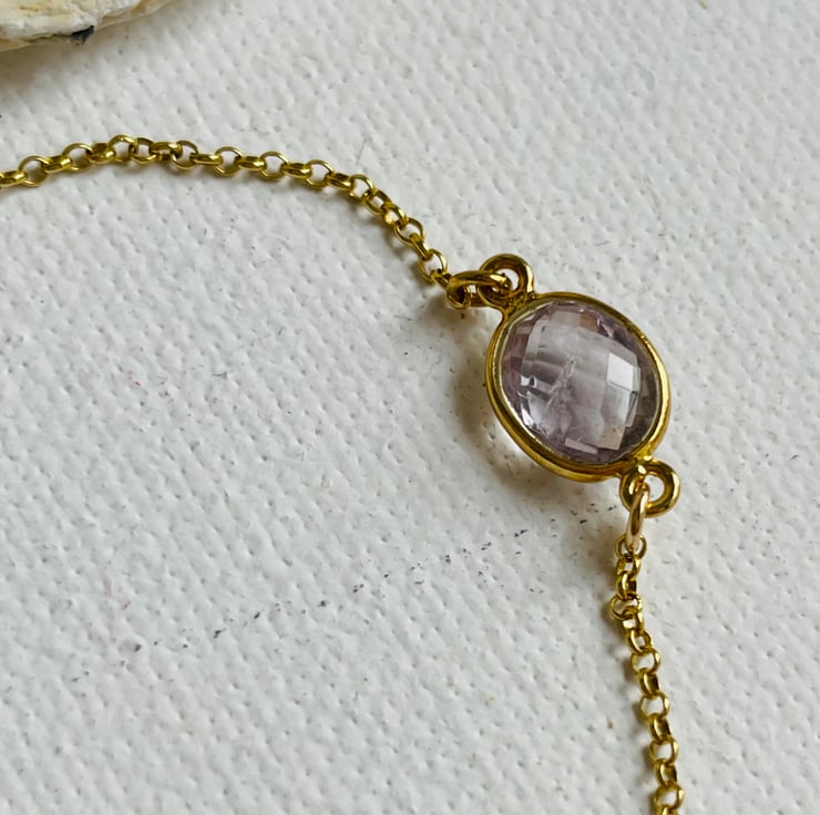 The bracelet measures a standard length of just under 7” and fastens with a lobster clasp which is accented either side by little amethyst beads.