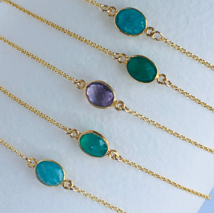 This bracelet is also available with a faceted green onyx or amazonite stone which makes them perfect for layering. And now also available in sterling silver!