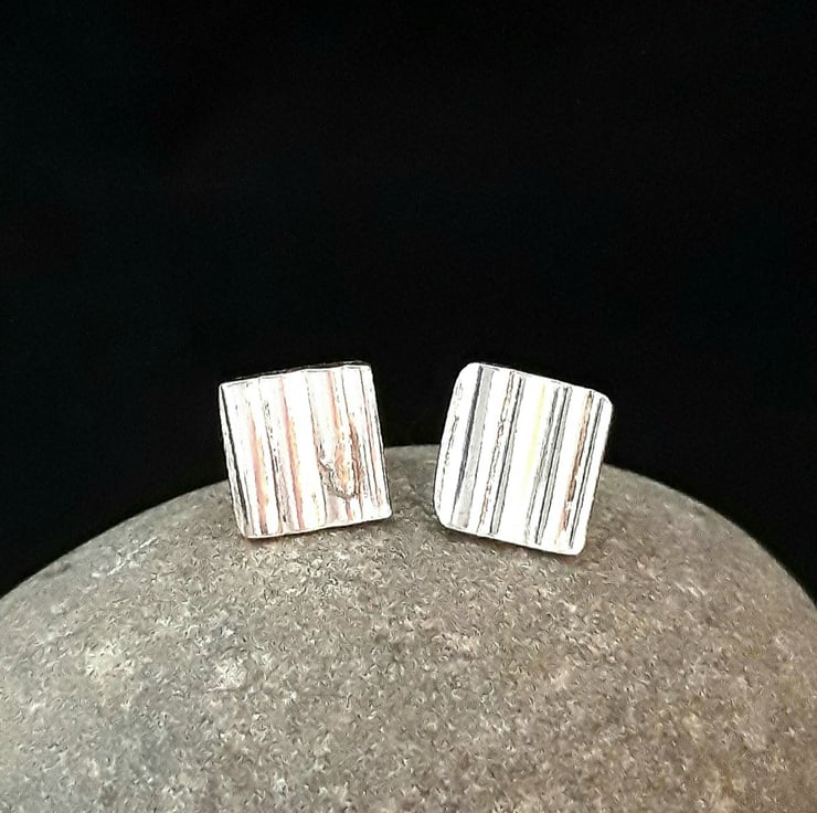 These lovely textured silver studs are cut from the side of an old silver trinket box lid - they are very stylish and ideal for those that love reusing materials in their jewellery.