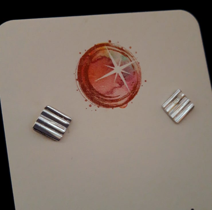 These lovely square silver studs are made from the textured side of an old silver trinket box lid. they are approx 7mm square and have silver posts. They are simple and very wearable and make the most of the original lined texture.