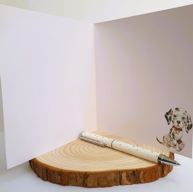 A matching image of a Dalmatian puppy has been placed on the inside of the card, at the right bottom corner.