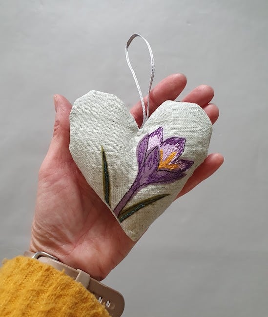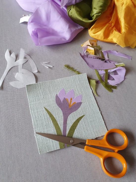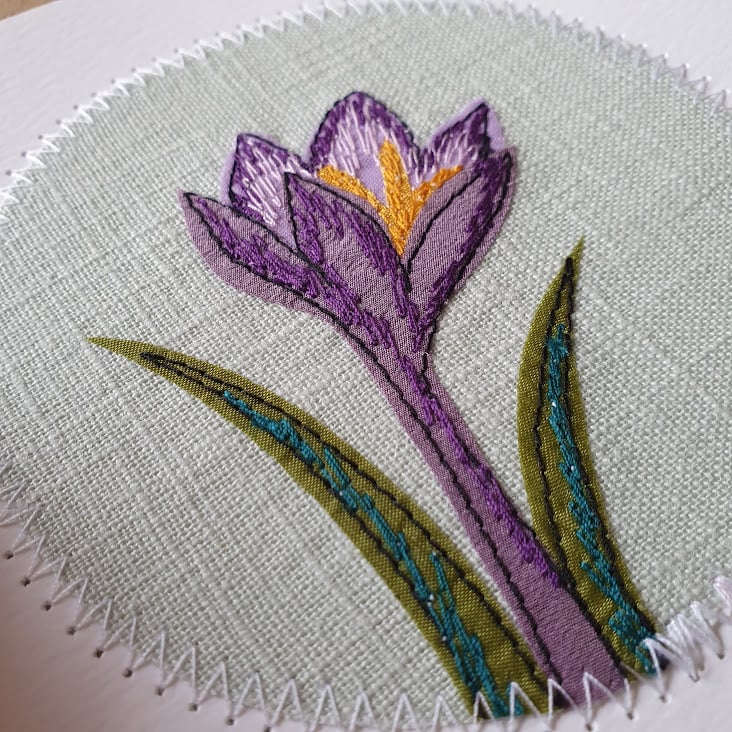 Handmade applique and machine embroidered Crocus card - Mother's day card, 'Thinking of you' card, Spring card, Easter card.