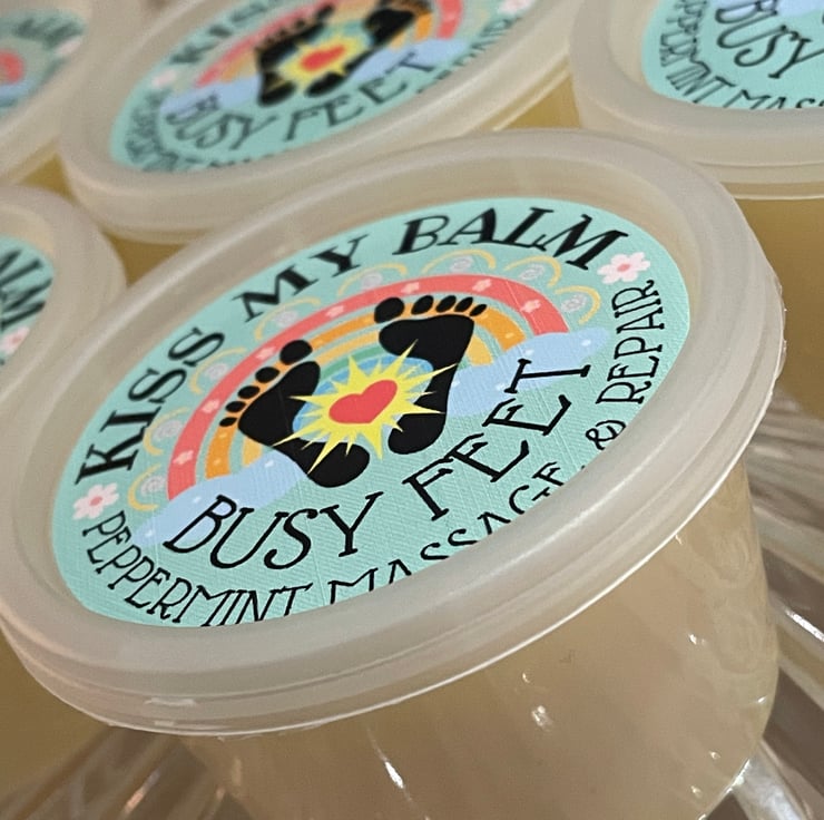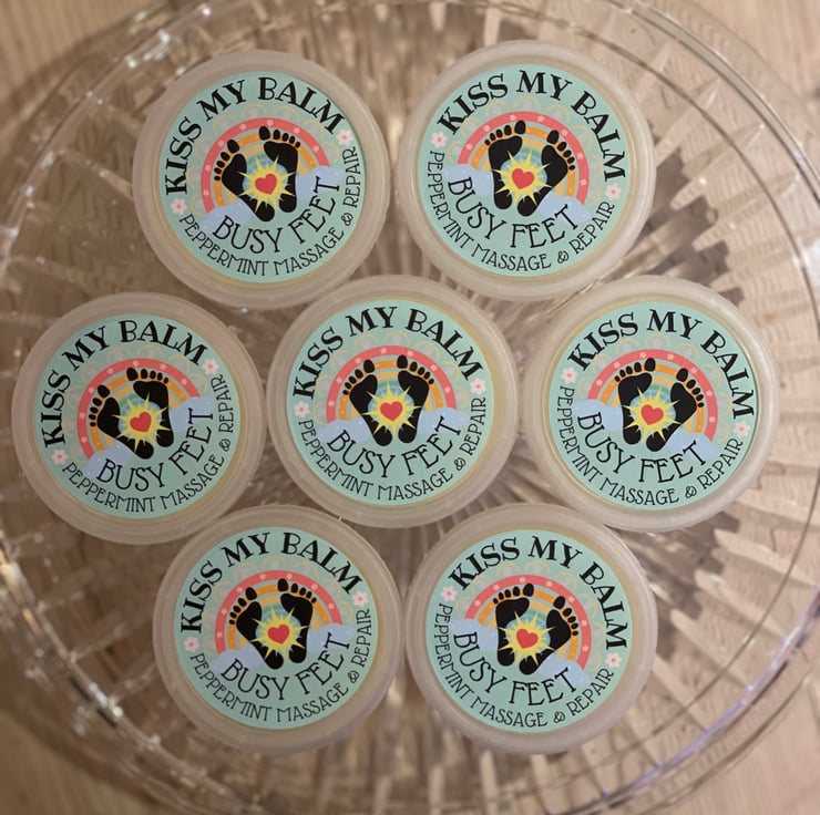 Pamper your Busy Feet with this soothing balm with lots of Peppermint Tingles to cool & relax your tired feet after your busy day also increases circulation and helps with muscle aches.