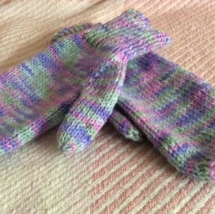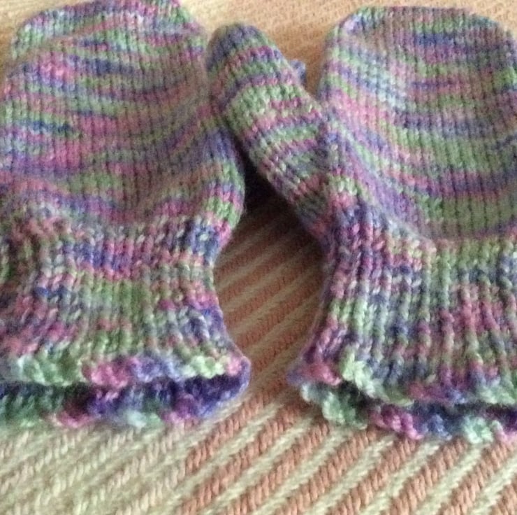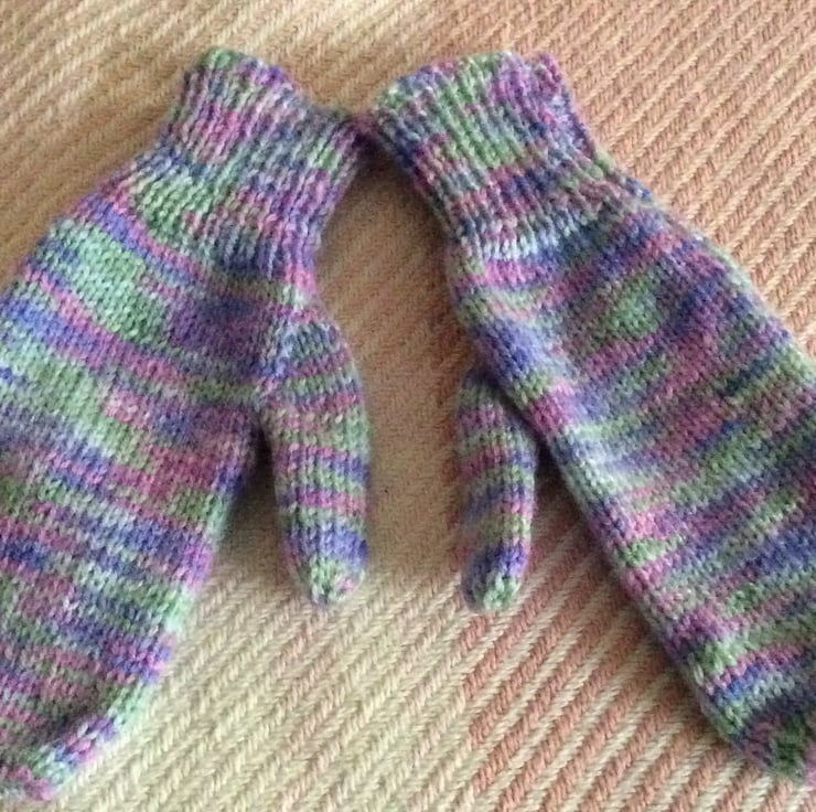 Beautifully hand knitted Mittens with a thumb and ribbed hem.