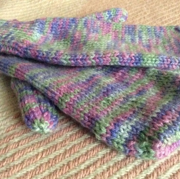 Handmade using acrylic yarn in a pretty pastel lilac, pink and green mix.